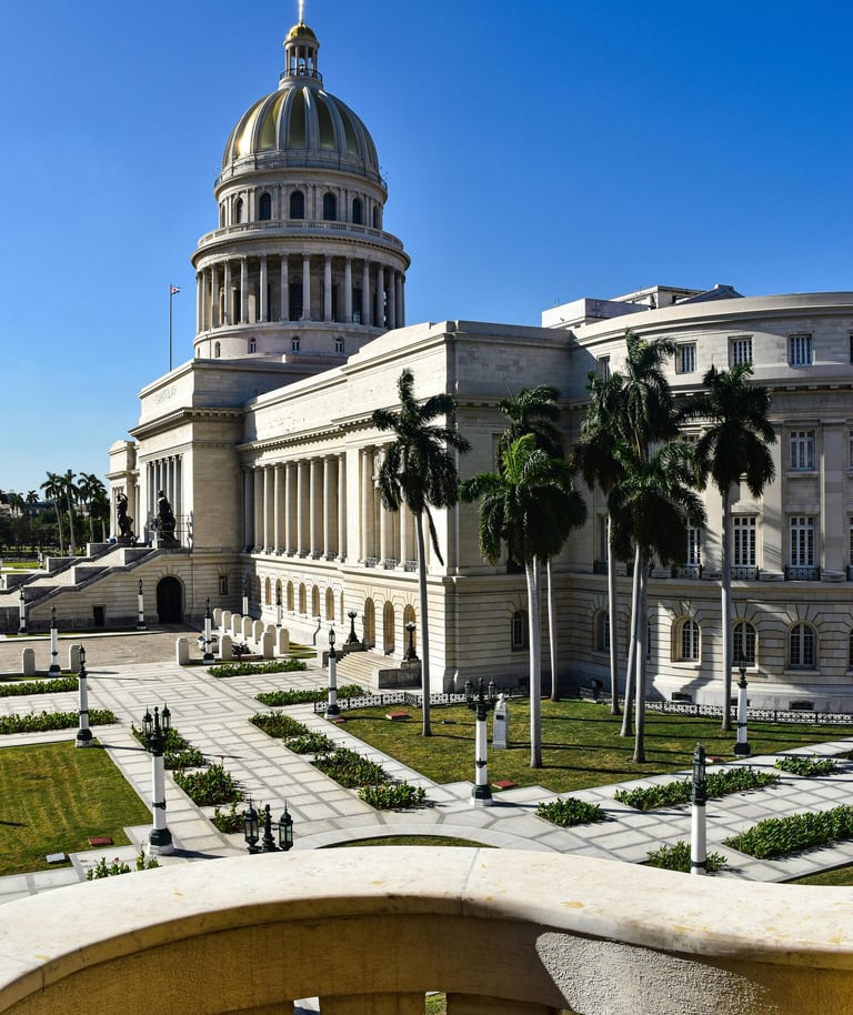 En el trayecto hacia el Capitolio, se observan el Museo de la Revolución, el Museo de Bellas Artes, Parque Central y el Gran Teatro de la Habana.