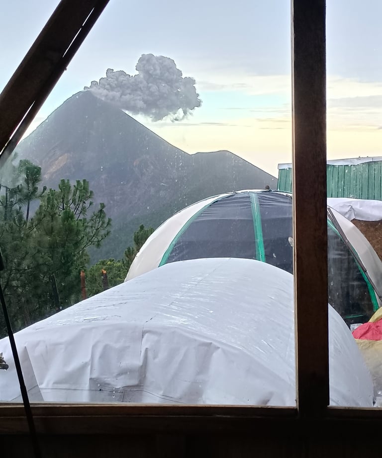 Sus erupciones suelen ser explosivas y constantes, con columnas de ceniza y lava visibles desde el Acatenango y otros puntos.