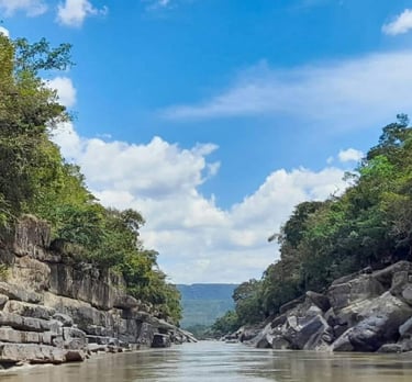 Al amanecer se realiza una experiencia sobre el río Guayabero, seguida del recorrido por Caño Cristalitos y el mirador de la Serranía de La Macarena, donde se aprecian panorámicas naturales del territorio antes del cierre del programa.