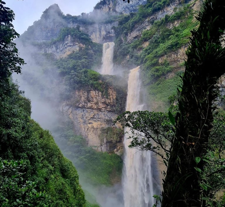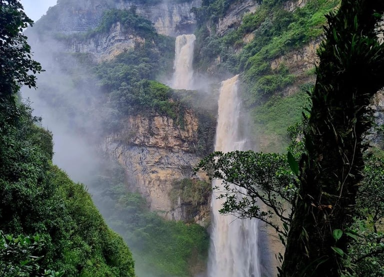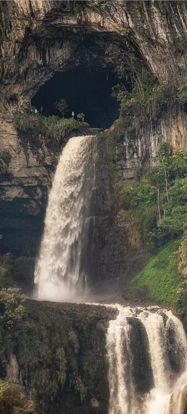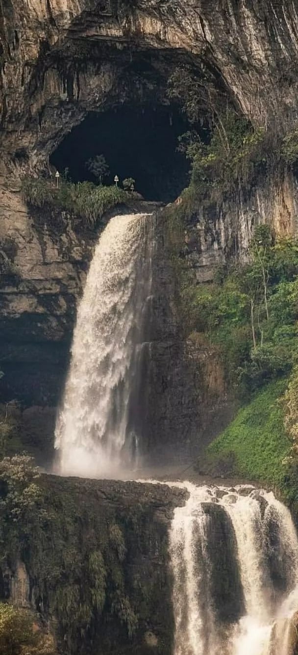 En medio de la montaña, el agua se abre paso y cae con fuerza a través de una enorme abertura en la roca, creando un espectáculo único en Colombia y en el mundo.